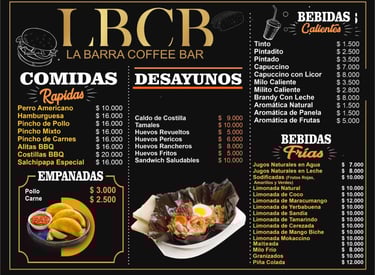 En La Barra Coffee Bar, la comida rápida es sinónimo de calidad artesanal. Usamos ingredientes frescos y nuestra sazón casera para ofrecerle un sabor superior, disponible para cualquier antojo.